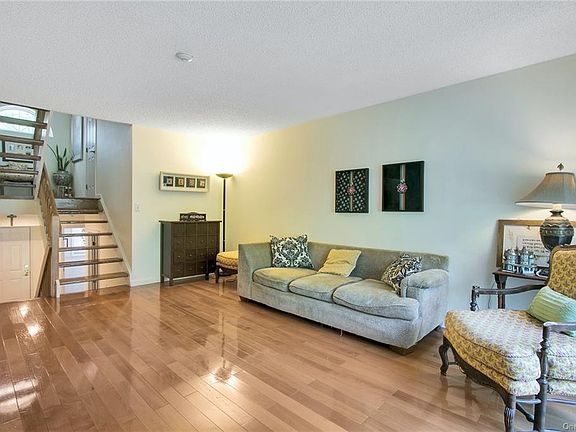 Welcome to The Hamlets! This lovely three bedroom, two-and-a-half bathroom townhouse features hardwood floors throughout, a spacious living room with sliding glass doors leading to the deck, a formal dining room, and stainless steel appliances in the kitchen. Roomy master bedroom features vaulted ceiling and master bathroom with Jacuzzi tub, walk-in shower stall, twin sink vanity and skylight. Finished lower level offers generous-sized family room to relax or entertain. Sliding glass doors lead to the beautiful, tree-lined backyard. One-car attached garage with private driveway and ample guest parking nearby. Beautifully maintained and landscaped property. This desirable community includes basketball and tennis courts, pool and clubhouse. Close to major highways and public transportation, shopping and restaurants...with Clarkstown schools!