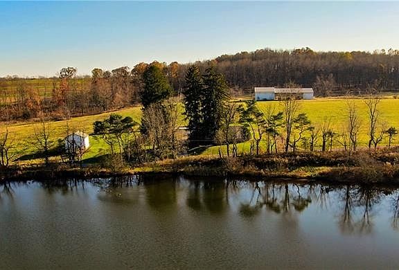 This stunning 87-year-old farmhouse is bursting with charm, land and stunning views. The welcoming front porch looks over a large 13-acre lake. 162 Elliot Road has a wonderful layout, there is first-floor laundry, and a walk-in pantry off the sunlit kitchen, there is a first-floor master suite as well. Every window has a lovely view of either the lake across the street or of farmland. Elliot Road has 4 bedrooms and 2 full baths, A large outbuilding with utilities, a smaller barn for animals as well as a 3 car detached garage. The Oil and gas rights do not transfer but there is FREE GAS!!!!! this property is not clean and green and is zoned agricultural.