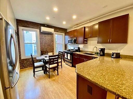 Stainless steel appliances, granite countertops, radiant heat, A/C, and in-unit laundry, Fenced in yard.