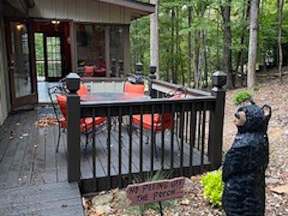 Welcome to "Fairways and Greens"! Perfectly situated to enjoy views of both #9 tee & fairway and #1 green, the mountains in the background, close to the front gate & the lake, walking distance to the pro shop & excellent meals and drinks at the Tavern at the 19th hole restaurant. Selling fully furnished with all brand new designer furniture & even comes with all essentials (cookware, utensils, towels, bedding, washer & dryer, TV's, you name it - just bring your toothbrush and change of clothes!) Extensively remodeled home - all new exterior paint on structure, decks, railings, patio, new landscaping, tree removal/pruning to enhance the amazing views, all new durable & low maintenance rigid waterproof flooring throughout (incl all new subfloor upstairs), nice, sturdy new custom stair railing, soft subtle patterned Stainmaster carpet on the stairs, painted kitchen cabinets w/ new specialty granite counter top, new designer island in kitchen, bar & refrigerator downstairs, and sitting area in the entry sunroom w/hvac & ceiling fan could also be a very nice home office w/ nature views. New leather sleeper sofa downstairs - home sleeps 8 comfortably. Brand new hvac & heat pump installed in home. Beautiful custom walk in showers in both bathrooms. Gorgeous vaulted wood ceilings upstairs and walls of windows on both levels to help soak in the views. Huge master bedroom (w/walk-in closet) & it's own patio w/a bistro set to sip your coffee, read a book, or just enjoy the surroundings in private. This amazing home also comes with a custom built in Sauna downstairs! New roof and skylight in 2017. Golf cart storage area under the sunroom. Large, level driveway excellent for entertaining, at the end of a cul-de-sac so no busy thru traffic = peaceful paradise!