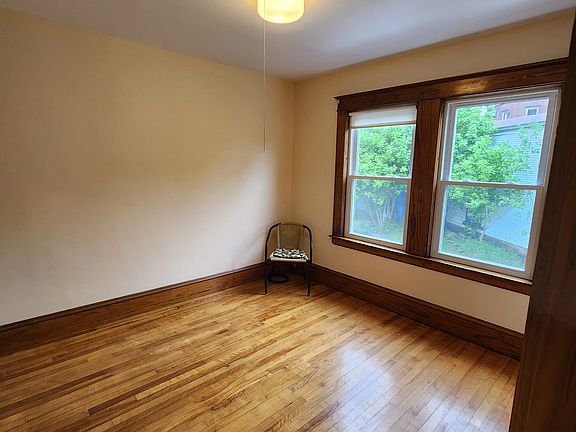 Freshly painted apartment with hardwood floors throughout. 2 bedrooms and one bathroom upstairs. first floor has large living room, kitchen/dining room. Basement has washer and dryer hookups and storage. Only parking for one car. First, last and security required. absolutely no pets. owner pays for water and sewer, rubbish, plowing and lawn mowing. tenant responsible for heat and electric.