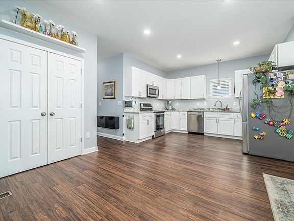 Discover this beautifully designed home featuring three spacious bedrooms with walk-in closets, two full bathrooms, and one half bath. The gourmet kitchen, dining room, first-floor laundry, and a welcoming living/gathering room offer a perfect blend of comfort and style. Step onto the owner's suite balcony or enjoy the upgraded laminate floors that lead to the open-concept gathering room and kitchen. Equipped with LG stainless steel appliances—including a dishwasher, microwave, and electric range—plus granite countertops and custom cabinets, this kitchen is truly exceptional. Ample storage and a seamless floor plan ensure both practicality and elegance. Outside, a concrete driveway, privacy fence, patio, and back porch complete this inviting home. What a Gem, Schedule your showing today !