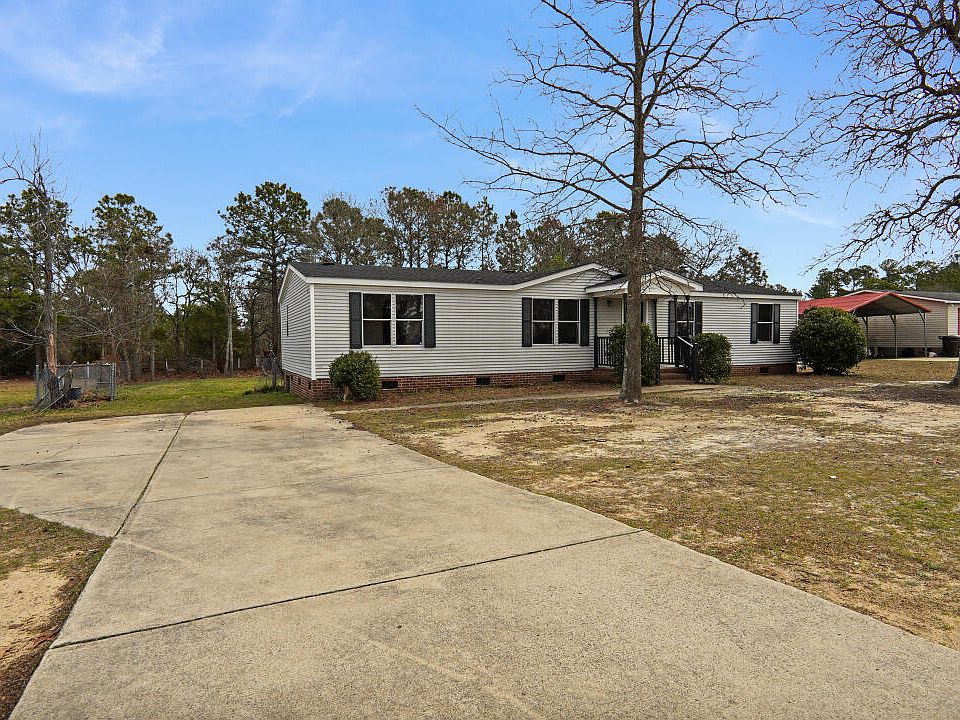 Large manufactured home has brand new eat-in kitchen with stainless steel appliances, 2 renovated baths, LVP flooring and fresh paint! Vaulted 'formal' living room & room to spread out with extra den (fireplace!) overlooking deck. Large flat fenced backyard. No HOA and outside city limits, county water. You will love the uniform flooring throughout and quiet dead end street!
