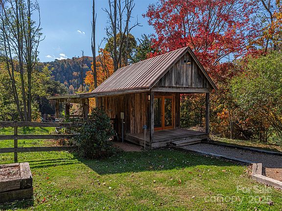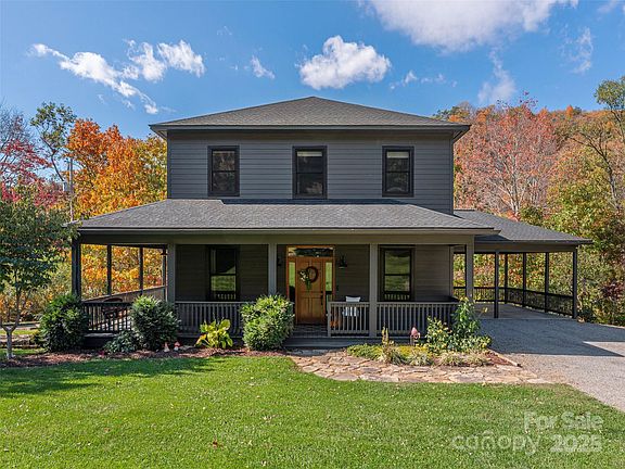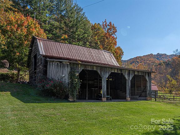 Welcome to Frazier Road-your mountain escape in the Lake Logan community, just 13 minutes from downtown Waynesville and 25 minutes from Asheville. This 3-bedroom, 2.5-bath modern farmhouse sits on nearly 4 acres of fenced, usable land surrounded by long-range mountain views and peaceful privacy. Step inside to an inviting open floorplan filled with natural light, wide-plank wood floors, and warm, modern finishes. The spacious great room features a stone fireplace with wood-burning insert, creating the perfect gathering spot for family or friends. The updated kitchen boasts custom cabinetry, a large center island, stainless steel appliances, and ample counter space for entertaining or meal prep. The main floor features a bonus room which offers endless flexibility for a home office, playroom, or guest suite. The primary suite includes a spa-inspired bath with dual vanities, wood countertops, and updated accents. Outside, enjoy the covered wraparound porch overlooking the mountains, or retreat to the fenced pasture, garden area, and historic barn—ideal for animals, storage, or a future workshop. A separate guest cottage provides additional living space, home studio, or creative getaway complete with new flooring and mini-split HVAC. Located over the mountain from Waynesville and Canton, this property blends mountain serenity with accessibility-perfect for a full-time residence, second home, or vacation retreat. Experience peaceful mountain living at its finest in this move-in-ready Lake Logan retreat.