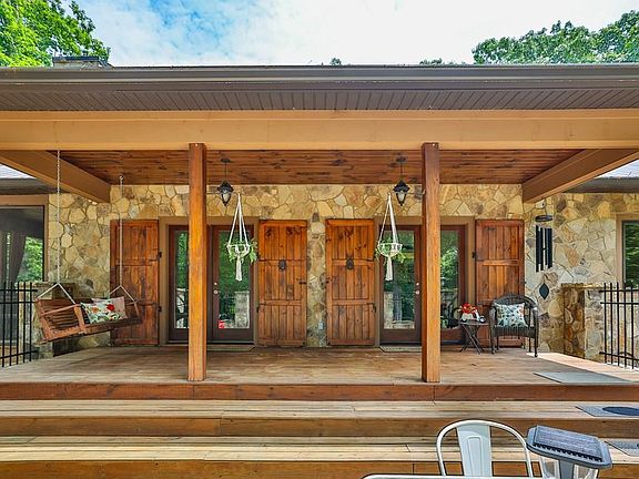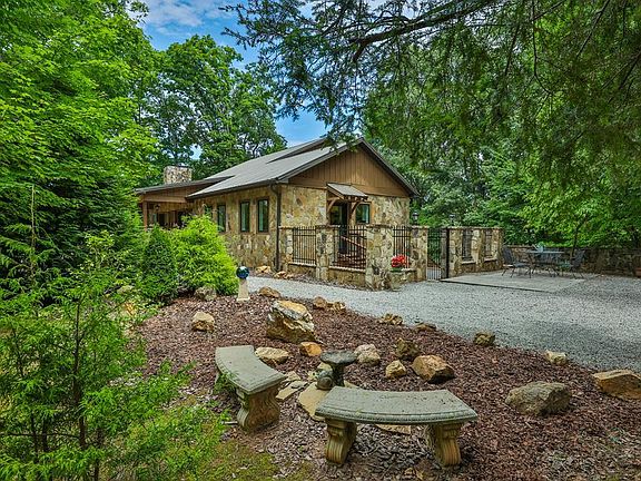 A Touch of Tuscany - Custom-built 4BR, 4BTH on five beautiful acres of semi-wooded property minutes from downtown Franklin. An Italian-inspired gated courtyard with hand-cut stone pillars and a finished flagstone patio welcomes you to the main living area featuring vaulted ceilings, wooden beams and fireplace. The kitchen, reminiscent of a Chianti wine region design, includes custom cabinets and walk-in pantry. Primary BR with en-suite bath. Large screened porch area, accessible from the Primary BR and Living Area, perfect for entertaining guests. Main level1BR in-law/guest suite w/full-sized kitchen and bath. Downstairs features a large rec room, bath, utility storage room and exercise /office room. Detached 2-car garage, workshop building and fenced dog yard. House generator.