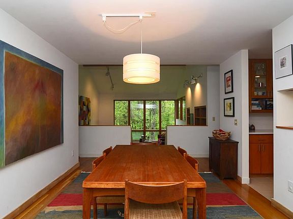 Space + convenience shrouded in nature in this Ellis Hollow contemporary on 2.5+ acres of wooded land. Close to Cornell w income apartment. Lights pours in from lrg windowsand skylights in the cathedral ceilings. Open floor = options for space use. Main floor has 3 bdrms, 2.5 baths; 4th bdrm + loft on 2nd floor. Must check out the modern kitchen & charming woodburning stove. Enjoy the wildlife pond firepit and many possibilities for gardening & other outdoor activities & features.
