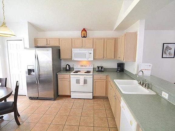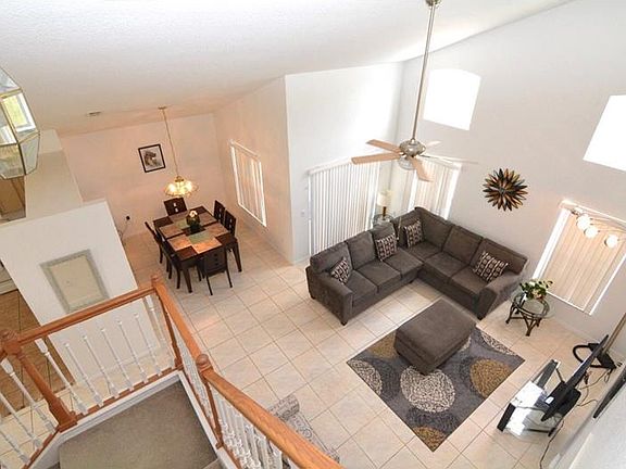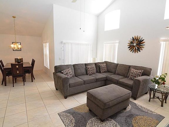 Stunning golf course views with no rear neighbors! Relax your days away on the gorgeous and spacious pool deck overlooking the inviting, sparkling pool. The pool deck has been resealed and painted just this year. This 4 bedroom 2 and a half bathroom single family home is located in the golfing community of Highlands Reserve. There is a spacious floor plan with lots of natural light, ceramic tile flooring throughout the ground floor with eating space in the kitchen along with a separate formal dining area. The master bedroom is also conveniently located on the ground level. This home has many updates and upgrades and comes fully furnished and move in ready. Ideally situated in close proximity to shopping, restaurants and central Florida's most popular attractions.