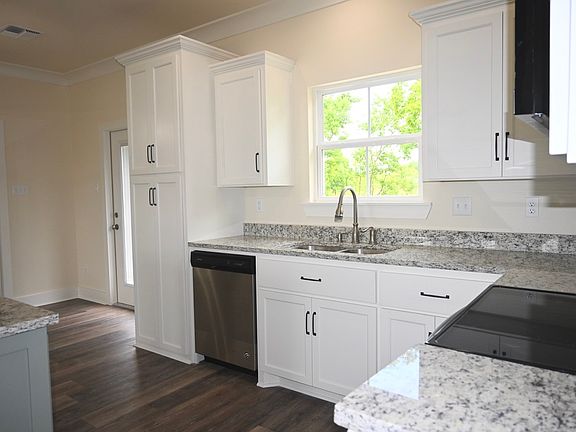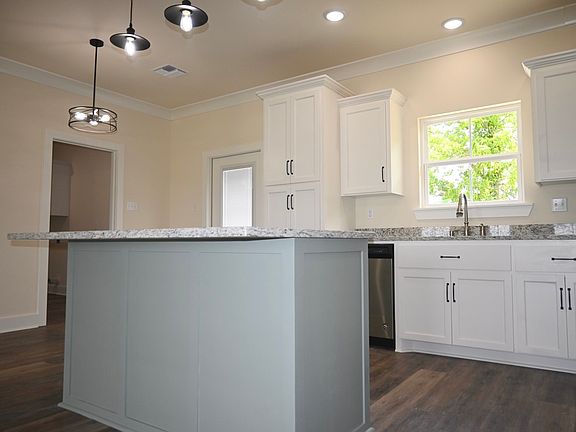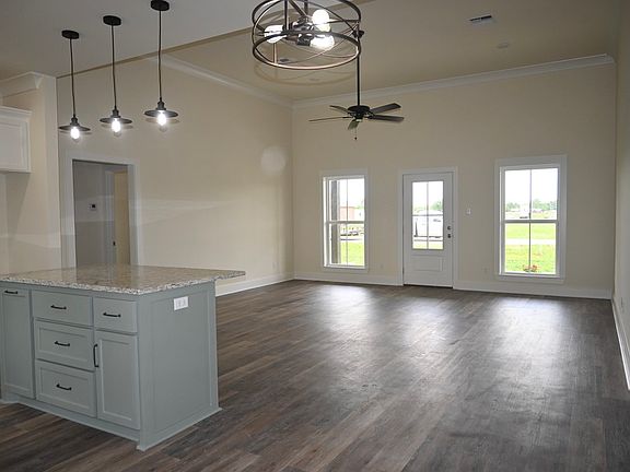 This beautiful Acadian Style home is a split floor plan. It has 12' ceilings in the living room and 9' ceilings throughout the rest of the home. It features a large laundry room with entrance through the garage. The laundry room has a separate coat closet and a large pantry. It has an opening into the Master Bedroom so laundry is easily accessed and clean up does not require going through the house. The Kitchen has custom built cabinets with a large kitchen island. Granite countertops are in the kitchen and bathrooms. Relax on the large front porch of this home!