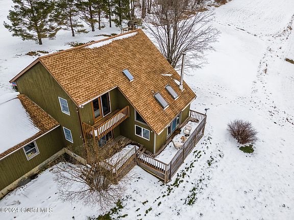 Three bedroom, two bath home on 5 acres in a peaceful country setting. Located on a quiet road minutes from the Village of Cobleskill. Skylights in the vaulted living room ceiling provides abundant natural light. Lots of attic and closet storage space. Fantastic sunrises and views of the surrounding farm land and hills. Southern exposure suitable to solar would tie in nicely with the current heat pump systems.