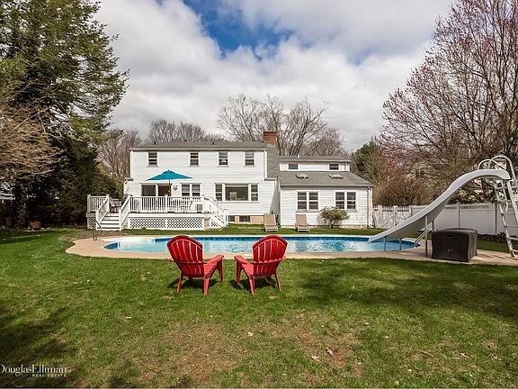 This is THE home to gather family and friends! The private backyard features a fabulous heated pool, a propane tank fueled grill for long lasting cooking, a huge deck, and large lawn with mature trees expertly situated along the perimeter. This 4 bedroom, 2.5 bath home has an updated eat in chefs kitchen with high end appliances, a separate nanny or in-law suite, fully finished lower level with a fitness room, and a family room with soaring ceilings. Situated in sought after Darien, Connecticut, close to trains, schools, town and less than an hour from New York.