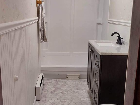 NEWLY RENOVATED -- photos are old because renovation is not complete. Photos will be updated when complete. New full-height ceilings (no drop ceiling!), new IKEA vanity/medicine chest, new porcelain bathroom floors, new paint and hardwood floors. Recent refrigerator, granite countertops, in-unit washer/dryer hooks (NOTE: Stacked or laundry center ONLY), dishwasher, forced hot air heating. Shared off-street driveway parking. Good neighborhood, close to CVS, Rice Square Elementary, Worcester East Middle School, North High School, 2 miles from U. Mass Medical, 1.5 miles to St. Vincent Hospital, 1 mile to Union Station.