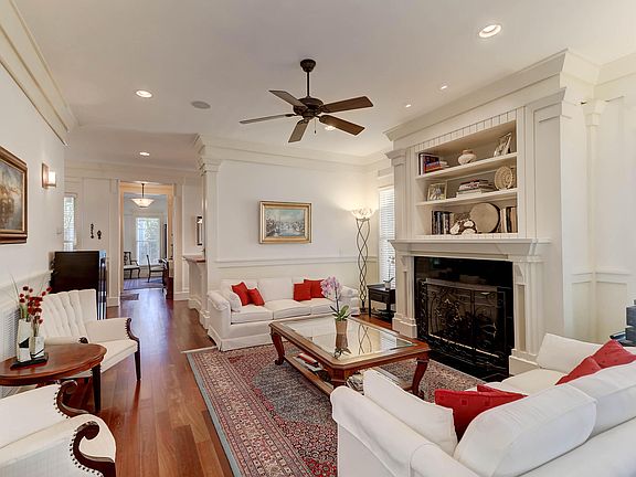 Walk to the I'On Square to restaurants or to the club from this charming 3 bedroom, possible fourth/office, 3.5 bath custom built home by Thomas Meredith. Special features include Brazilian cherry floors throughout, handsome trim work, granite countertops, tiled bathrooms, 10' ceilings throughout, a metal roof for ease of maintenance, a one car garage with plenty of off street parking and a screened porch which overlooks a private fenced in courtyard with fountain. The first floor has a gourmet kitchen and a cozy breakfast room. The spacious dining room and living room with gas fireplace, laundry and powder room complete the first floor. Up a few steps is the private Master suite and up just a few more is an open family room, two additional bedrooms ( one with a balcony) and two baths.