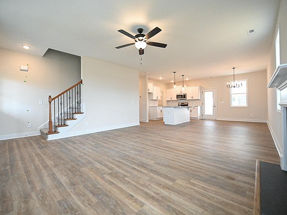 This new home built by Ben Stout Construction is one of the beautiful jewels in the new neighborhood, Johnson Ridge. While it's still being polished up and under construction, you can see quality craftsmanship and attention to detail. This Southern Grace plan has a great functional layout and open floor plan. As you walk in the home opens up to dining, living and kitchen space. The primary bedroom suite (Master suite) down the hallway to the left is very spacious along with a full bath and large walk-in closet. The laundry room is conveniently located between the primary (master) bedroom suite and the garage door entry. Upstairs includes two secondary bedrooms, each with walk-in closets, a full bathroom between them and unfinished storage space. All bedrooms, finished closets and stairs will feature carpet. The foyer, living room, kitchen, laundry room and bathrooms will be complete with LVP flooring. Schedule your showing soon and secure your new home for 2024!