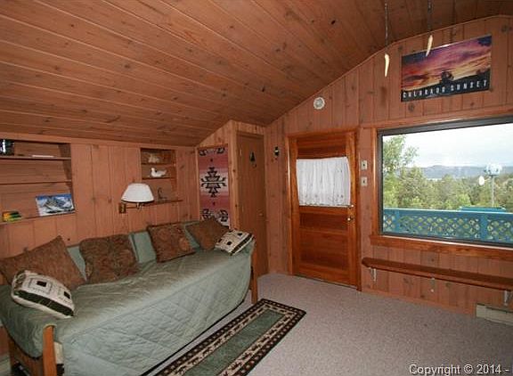 Fantastic cabin in the woods with a wonderful western view of the Sangre-De-Cristo Mountains and Collegiate Peaks. Cabin is rustic with knotty pine tongue & groove walls & ceilings (main level). There is a loft area over the living room that will allow for additional sleeping area. Fully functional kitchen with all appliances included. Home has been well insulated so that it can work well for full or part-time residency. Wood burning stove will heat the main level. Lower level is a walkout complete with a spacious bedroom, bath and laundry area. Covered deck on back side has all the beautiful views. Located on a quiet street. Lot is treed with Aspen, fir, pine and spruce. Abundant wildlife. Cabin is in move-in condition.