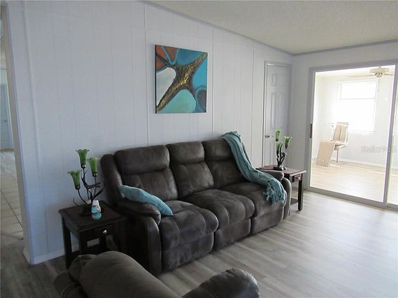 Spacious 1404 square feet home with a large living room and a family room as well. Nice corner lot with quick access to route 27. New stovetop in the cooking island, built in oven, and new refrigerator in the kitchen. There is a separate dining room off the kitchen and a family room on the other side of the kitchen. The guest bath can be accessed from the entry hallway or the second bathroom. The master bath has a garden tub, a separate shower, double sinks and a walk in closet. Most of the home has been recently painted inside. New vinyl wood look floor in the living room, dining room, family room and guest bedroom. The kitchen and baths have tile floors. There are lots of storage closets and cabinets in the home. There is a nice Florida room on one side of th house and a screen room on the other side. A membrane roof was installed in August of 2011(inspected last year). The AC was new in August of 2012. Own your own land with low HOA fees of $560 for the Entire YEAR. HOME IS RENTED UNTIL DECEMBER 31, 2020. Become a landlord or buy your home for next winter. Enjoy 2 clubhouses, 2 pools, 9 hole golf course, tennis courts, shuffleboard courts, workout room, pool tables, horseshoes, pickleball, bocci ball, library and lots of activities. Please verify measurements. No VA/FHA.