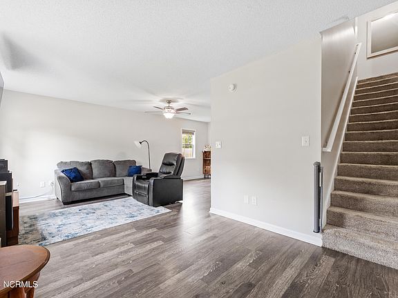 You'll walk into an open floor plan. Closet downstairs has custom shelving creating ample amount of storage for such a large closet. Kitchen is open to the dining and living area, kitchen aid dish washer is only a year or so old. Off the kitchen you'll find a large back yard with a patio. Blinds are new. Up stairs you've a 3 bedrooms. Primary bedroom has its own bathroom as well. Upstairs was just freshly painted- HVAC is only 3/4yrs old.