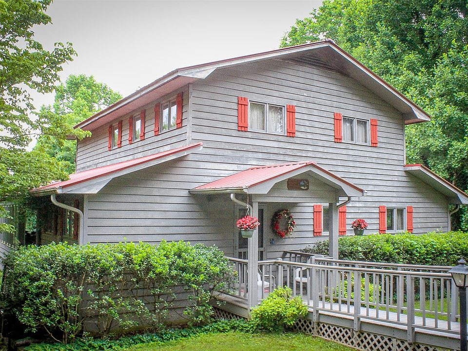 Great cottage house with lots of room for the whole family. 18 foot ceiling in family room, dock, 2 buck stoves, new windows and patio doors, out buildings with electricity, open deck and covered deck all sitting on almost 2 acres of land.