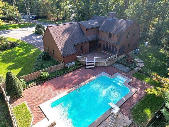 Custom built 1976 Gambrel has inviting curb appeal designed with architectural details, a nod to the bicentennial! Beautiful COFFERED wood ceilings ¢er fireplace are the anchors of the home. Cooks Kitchen w/custom cabinets opens to Dining Room framed by picture window, the signature of this home! Family Room w/gas fireplace open concept highlighted by gorgeous beamed ceilings. Elegant Living Room w/custom built-ins &french doors flow to screened porch overlooking in-ground POOL &fenced yard. Privacy is premium w/mature landscaping & brick patio. Upstairs: 3 lovely bedrooms, primary bedroom: private bath w/laundry, walk-in closets! Fabulous Playroom in Lower level has built-ins &fireplace, SO many storage spaces! Two car garage w/great storage above. Pella Windows, AC, Generac Generator, Title V, public water. Neighborhood convenient to schools & train. Magna Vista Estates original owners lovingly cared for this home thru the years & excited for the next caretakers to make memories!