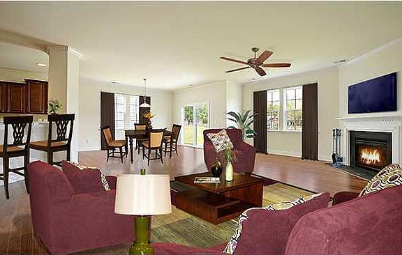 The Etiwan is a fabulous plan that features a first floor master. This gorgeous home has the ''Everything's Included'' feature package. The exterior offers a Cape Cod look with such a great interior layout! Inside you will find hardwoods throughout with the main living areas on the first floor, tiled bathrooms and carpet in bedrooms and upstairs. There is a home office with double French doors, an open kitchen that is fit for a gourmet chef! It features stainless appliances, double wall ovens, gas cooktop with vented microwave above, dishwasher and refrigerator, granite tops and glazed cabinets with dental molding and soft close drawers and doors. Prepare the meal of a lifetime as you cook away in this dream kitchen overlooking the breakfast area and great room where your guests can c