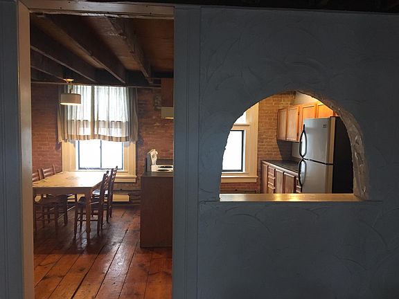 A huge loft apartment.- Unique and creative space with tall ceilings, wood floors, and exposed brick. Open and spacious apartment. Large living room with tall ceilings and windows. A big kitchen with dining space. 2 bedrooms lofted above the main living area with an office. Or make it 3 bedrooms- 3rd room is open to the kitchen beneath. Note- the carpet has been removed and new updated pictures are coming soon. Private deck. Off Street parking. Laundry room included in the building, shared yard. On bus route. One block form the village park and amazing water falls. A second floor apartment in a building with several units. Located in Ludlowville, a small village within Lansing. Very nice neighborhood and convenient to Ithaca. $1275/mo plus utilities (gas and electric)
