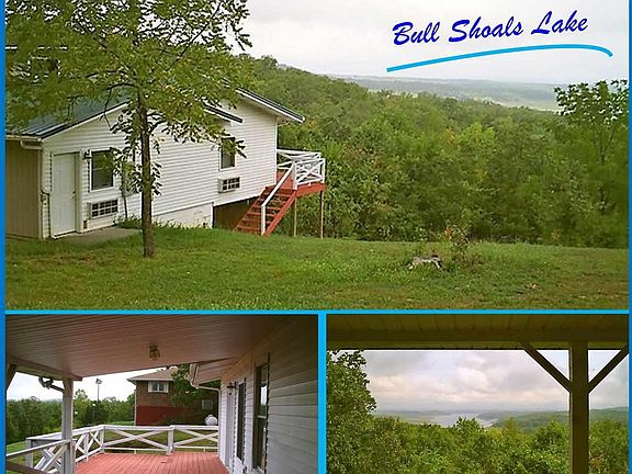 Beautiful large home with Bull Shoals Lake view. This house has so many options you wouldn't believe. It could have 3 separate living areas. The main house, the lower level basement studio and a mother in law apartment on the side. If you have a family that want to be close but want their own privacy, this is perfect. Or could be up to 6 bedrooms, 5 if you use the large basement as a bonus family room/den. Or being close to Lake Bull Shoals, you could make an air b&b and offer nightly rentals. The main part of the house has a beautiful kitchen with hardwood floors, granite tile counters, large walk in pantry full of shelves for groceries, large open living room, dining room area, full laundry room, 3 bedrooms and a full bathroom. It has a wood burning fireplace for those nights you want to be cozy. The mother in law apartment has a living room, large spacious bedroom, full bathroom, kitchenette, it's own washer dryer hookup and a walk in closet as well as it's own electric heating and air units and a propane stove for backup heat. The main part of the house has sliding patio doors that go out onto a large covered deck overlooking the lake. The mother in law apartment also opens onto this deck. Great view in winter, cut a few trees for a better summer view but you can still see it now. The lower level walk out basement is almost 800 sq ft. It has a huge cedar lined walk in closet, a full bath with a shower, rock fireplace with gas log insert right now, heating air unit and even more storage under the stairs. It has its own private 35 ft deck to sit and enjoy the wildlife. Over 3160 square foot home sets on 1.25 acres with a shop with a garage door. Pull your car in or use it for woodworking. On a dead end road with just a few neighbors, lots of privacy, beautiful mountain and lake views as well as trees. Just 2 miles from town and the store, 5 to the marina or Corps Park. Great for a family or investment property for an investor. If you have any questions about the house, text before calling with your name and I will get back to you.