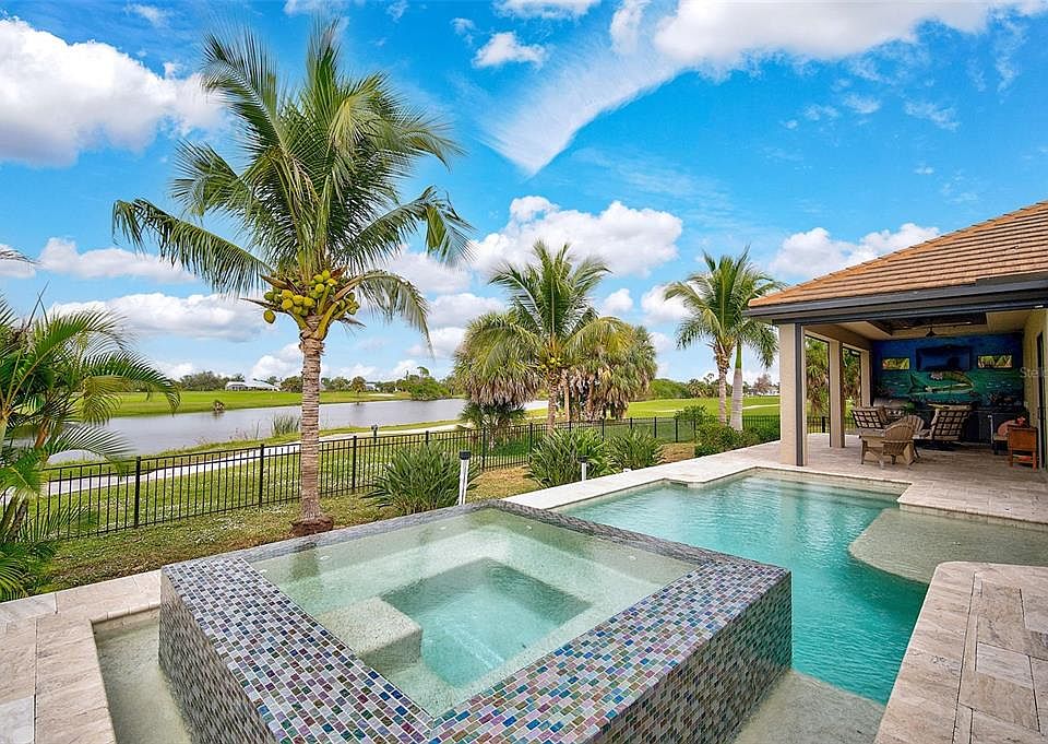 Welcome to your dream home on a picturesque golf course in Rotonda West on Florida's Gulf Coast! This stunning 2484-square-foot residence is a testament to luxury living, offering a perfect blend of exquisite features and the allure of a vibrant, activity-filled community. Nestled within Rotonda are four challenging golf courses, catering to enthusiasts of varying skill levels. For those seeking the thrill of world-class tarpon fishing and annual tournaments, the renowned beaches of Boca Grande are just a short drive away. Rotonda’s proximity to waterfront - including many marinas within minutes- promises not only fishing, boating, kayaking and paddle boarding but also a culinary haven with an array of dining options. Managed by the Rotonda West Association, this deed-restricted community ensures a meticulously maintained environment, promoting a sense of community pride. Residents enjoy the camaraderie of various clubs and activities in the community center, fostering a vibrant social scene. Here, you’ll enjoy parades, music in the park, bingo, educational programs and more. A unique feature of Rotonda is its extensive canal system, providing residents the opportunity to explore the waterways with their own boats or just watch the annual holiday boat parade. Walking paths around Broadmoor Park offer hours of bird and wildlife watching. As you step into this splendid home, you are greeted by 2484 square feet of meticulously designed living space. The heart of the home, the large kitchen island, is a chef's delight, perfect for entertaining guests or preparing family meals. The entire home boasts elegant tile flooring, seamlessly blending style with practicality. Safety and peace of mind are paramount, thanks to impact windows that not only enhance the aesthetic appeal but also provide protection against the elements. The long bank of sliders which rounds the corner opens both the living and dining rooms to the beautiful pool area in true indoor-outdoor living. Step outside to the expansive covered lanai, complete with an outdoor kitchen – an ideal setting for al fresco dining and entertaining against the backdrop of Florida's balmy evenings. Watch the wading birds on the golf course pond as you warm by the fire pit. Then enjoy a dip in your heated pool or relax in the spa. Off the pool spa, the main bedroom and bath are a sanctuary, featuring a walk-in shower and a luxurious soaking tub, offering a retreat within your own home. With a 3-car garage, indoor laundry, separate office space and thoughtful details throughout, this residence caters to both functionality and style. Experience the Rotonda West lifestyle – where golf, water adventures, and community spirit converge in perfect harmony. The search for your dream property ends here!