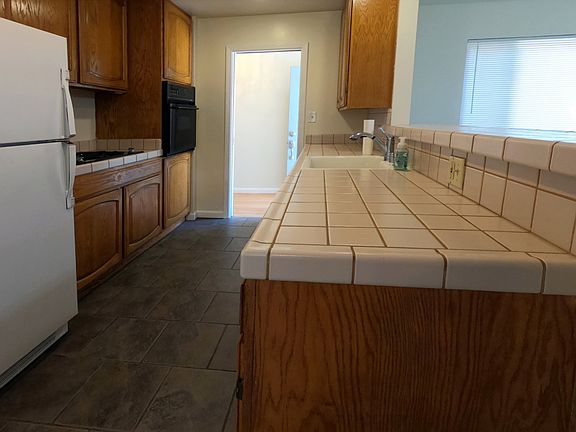Available now. New central heat and air, new window screens, new blinds and draperies, new interior paint, six ceiling fans, multi-pane windows, whole house fan, recessed lights in the kitchen and bathroom, and wood burning fireplace! The hard wood floors were just re-finished, and all three bedrooms have mirrored closet doors. The kitchen has a gas range, oven, fridge and dishwasher. Washer and dryer hook ups are in the garage with a shop sink. Sprinklers front and back. The back yard has a pergola and an orange tree. Near downtown Livermore this home has a fantastic location. Call to schedule your appointment today. One small non aggressive pet is negotiable.