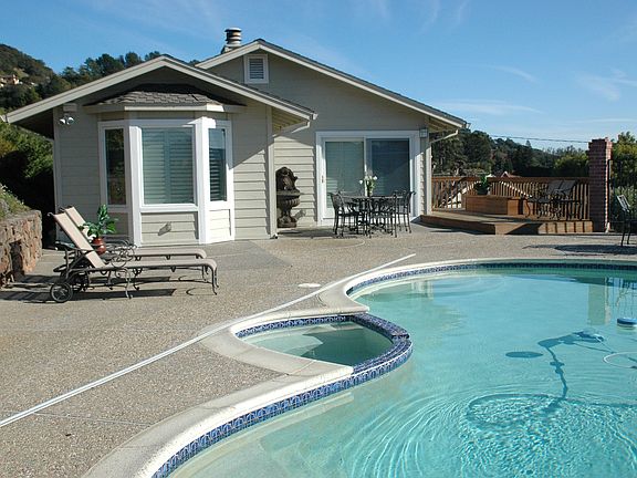 Priced to sell! Nothing available like this on the market: must see to truly appreciate! Ready to move in this beautifully remodeled 3+ BR/3BA home is situated on a large hilltop lot above Forbes area. Defining today’s lifestyle, this approx. 2862 square foot sunny home features expansive views from Mt. Tam to East Bay, a brand new gourmet eat-in kitchen with sliding doors to a huge patio with pool for BBQ’ing and enjoying the colorful sunsets over Mt. Tamalpais. This home enjoys South, East and West facing orientation and gets all day sun. Large and luxurious master suite with deck and sweeping views (great for viewing sunrises!) plus one bedroom on main level, 1 additional BR plus large family room (could be 4th BR) on ground level opens out to flagstone patio and large terraced garden. Custom closets and built-ins throughout. A/C. Fully landscaped front and back yards. 3 Car Garage. Coveted Sun Valley Schools.