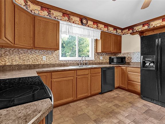 This brick 4BR residence offers a delightful blend of classic character, contemporary flair and neutral decor. The new roof ensures peace of mind for this timeless beauty. Situated on a sprawling 1-acre tabletop lot providing plenty of outdoor space for recreational activities, gardening, or simply enjoying the serenity of nature. Enjoy a spacious eat in kitchen with laminate flooring and tiled backsplash. For a more formal occasions, the adjacent dining room provides a comfortable setting showcasing exposed brick that adds a touch of character while dining. There is access to the front and side deck for alfresco dining. The living room has a large bow window, gas fireplace and hardwood floors under the carpeting. Two main level bedrooms boast hardwood floors, a main level half bath features a built-in storage cabinet. Upstairs is a full bath flanked by two more bedrooms w/ample storage. Downstairs is the large FR w/a pool table, bar area, electric FP, full bath & the laundry room.