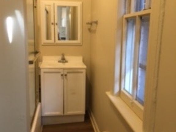 Newly remodeled. Large 2nd floor apartment, approx. 900 sq. ft. Galley Kitchen with Pantry, 1 Bedroom with walk-in closet , Dining room, Livingroom, and office. Hardwood floors throughout. $1575.00 + utilities.