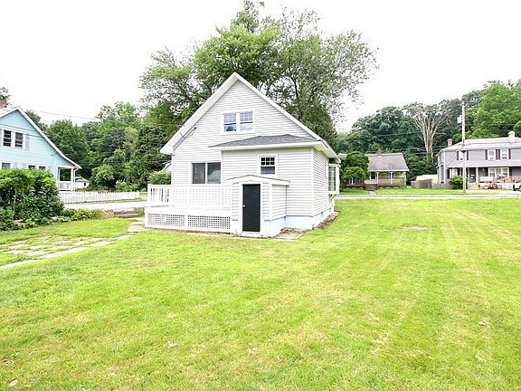 Well maintained and updated home in great commuter location and on bus route! Kitchen is bright and clean with solid freshly painted white wood cabinets and built ins! New gray wood look laminate flooring, new carpet in bedrooms, and new paint throughout! 3 bedroom, 1 is on 1st floor and 2 bedrooms upstairs, large bathroom, new flooring with laundry area too on 1st floor! Large enclosed front porch and rear deck overlooking large flat yard! New roof and siding too!