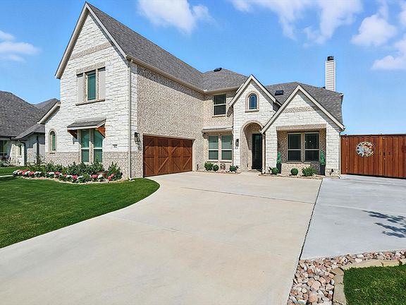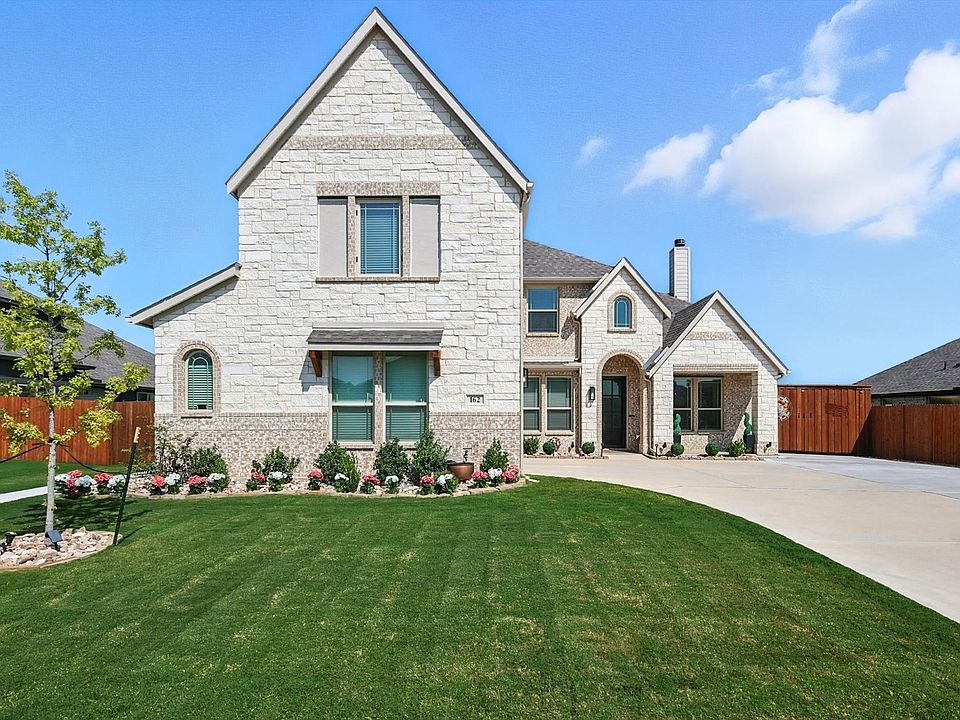 This beautiful 2-year-old home sits on a premium lot backing to a pond with wide open countryside views and offers 5 bedrooms, 4 full bathrooms, an office, dining room, media room, and large loft. The open family room with real wood fireplace flows into the kitchen, which was updated less than 6 months ago, and the 65” wall-mounted TV and Cindy Crawford sectional (6 months old) stay with the home. The backyard has been upgraded with custom turf, a putting green, and no-maintenance landscaping. Inside you’ll find custom paint, upgraded tile flooring throughout the downstairs, and a whole-house soft water system. Upstairs features three spacious bedrooms with walk-in closets and two full bathrooms, one with a walk-in shower and the other with dual sinks and a bathtub, along with a loft and media room overlooking the pond and countryside. Washer, dryer,Refrigerator,Glass panel for front door screen are also included. Sprinklers go off in back yard to keep turf clean.Conveniently located near schools, just 5 minutes to I-35 and 35 minutes to the airport.