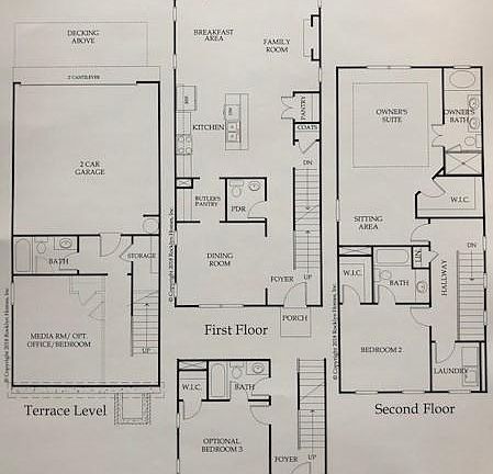 END UNIT- Floorplan called 'Deerwood. Three Stories Townhome. Cozy home with hardwoods on main floor and stairs. Beautiful granite countertops with island and pendent lighting hanging above. Breakfast area overlooking the fireside family room. Separate dining room with butler pantry leading into the kitchen. Inviting master spa with tile floors, relaxing Garden Tub, separate shower, vanity/ dual sinks, and walk-in closet. Media room/optional office/ bedroom on terrace level.
