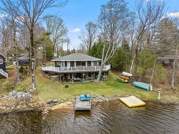 Waterfront on Big Robin Hood Lake in the Berkshires! Situated on a peninsula, you can’t beat the location of this updated hexagon shaped home on a private 88 acre ‘no wake lake’. The crystal clear lake is great for canoeing, kayaking, fishing, and more. The home’s exterior is designed with the lake as the pinnacle; the expansive 70'+ deck encompasses the entire back of the house, and the walk-out lower level with a patio leads right to the water. Inside, you’ll find an open floor plan with floor to ceiling windows focused on the view, new hardwood floors, and recessed lighting. There are 3 sizable bedrooms and an updated full bath. Downstairs has even more living space for entertaining and a second full bath. Additional updates include: roof, windows, oil tank, walls, vinyl siding. Just 2.5 hours from Boston and 3 hours from NYC, Becket continues to be a hidden gem for many looking for a convenient escape. Minutes to Jacob’s Pillow, Lee, Tanglewood, and all the Berkshires has to offer