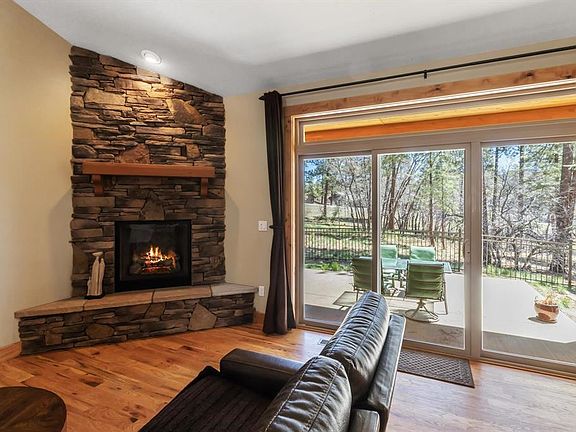 PEACEFUL RETREAT AMONG THE PONDEROSA PINES! This one-level living home is nestled among the tall pines in the coveted Edgemont Highlands subdivision. Perfectly positioned on a 1/3 of an acre, with a floorplan sure to please! The master en suite provides privacy on one side of the home, with two additional bedrooms and a full bathroom on the other side of the home. Tiled foyer entry, oak hardwood flooring throughout, and vaulted ceilings in the living room with large sliding glass doors allowing natural sunlight and views of swaying, breezy pines. The living room has a gas log fireplace with stone surround that quickly and efficiently warms the home. Open kitchen concept with barstool island, custom cabinetry, granite countertops, and cabinet under lighting. All stainless-steel appliances, including a 5-burner gas stove top and double ovens. The private master en suite has a walk-in closet with built-in shelving, dual sinks, granite countertops with backsplash, a large jetted luxurious bathtub, and a separate tiled shower with a cascade waterfall showerhead. Added storage in this home with a linen hall closet, and a separate laundry room with overhead custom cabinets. Enjoy outdoor mountain living in this backyard with a covered porch, concrete patio slab, and dog friendly fenced backyard. You will have direct access to over 10 miles of Edgemont trails for hiking right off your back porch! Over the last two years the homeowners have installed an air conditioner and completely repainted and sealed the exterior of the home. Edgemont Highlands subdivision provides extensive private trail systems, river access, a Lodge, a community garden, and public art for your enjoyment.