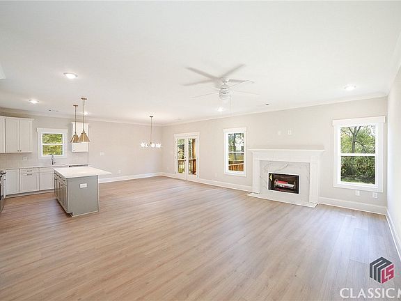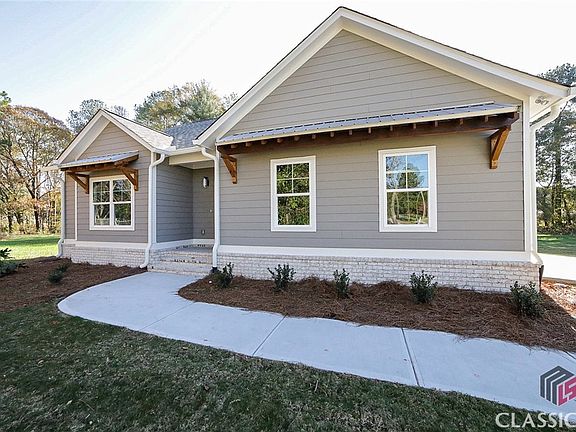 New construction in downtown Watkinsville for under $500k! This charming 3 bedroom/2.5 bathroom home is ALL ONE LEVEL LIVING! Presenting the Willow plan: talk about flexibility, this sprawling open concept has plenty of room for comfortable, everyday enjoyment while having the ideal layout for anyone. The Willow features an open kitchen concept with cozy fireplace making the perfect entertaining space. This plan also features a mudroom area, dining room, great room and fabulous kitchen with huge center island. This new build includes custom kitchen cabinetry in Snow (white) with contrasting Mineral (light grey) island, durable quartz countertops in kitchen and granite in all bathrooms, tiled master bathroom floor and shower walls, full hardieboard exterior siding with brick skirt surround, front & back covered porches, extensive trim package, designer light fixtures, wood burning fireplace with tile surround, and a Whirlpool stainless appliance package. All of these dynamic appointments are perfectly enveloped on a spacious lot in downtown Watkinsville adorned with professionally installed landscaping with Bermuda sodded yard adding to its curb appeal. No HOA. This home is conveniently located close to shops, restaurants, banks, gas stations, Rocket Field and OCAF!