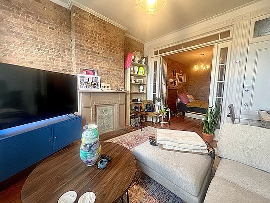 Soulful and Super sunny 1.5BR in Prime Greenpoint! This Unique Extra Large apartment features 10FT high ceilings with wooden beam details, Exposed Brick walls and Hardwood floors throughout, Crown Moldings and Decorative Fireplace! Huge living room easily fitting dining area and enough space for that large couch and coffee table, conveniently located next to the updated Kitchen with huge Stainless Steel fridge. Xlarge Bedroom with French doors and a large adjacent room, giving the option to two living rooms or private office, basically tons of space to configure! Recently gut renovated bathroom! Live in Greenpoint, with all the charm and convenience the neighborhood has to offer! Only 3 Blocks to McCarren Park or Mc Golrick Park and 10 minutes to the G at Nassau or the Graham L