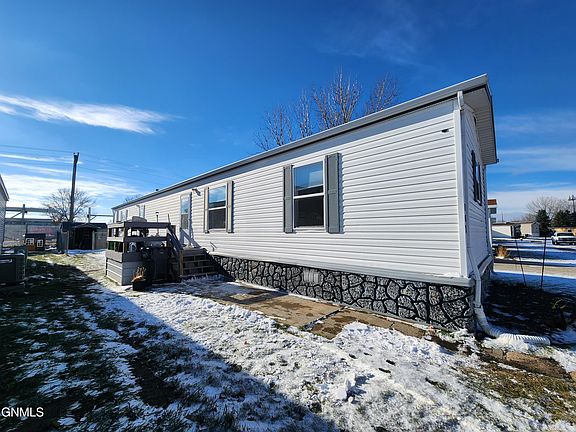 Enjoy affordable living in this 3 bedroom, 2 bath home located in southeast Bismarck. Set in a professionally managed park with one of the area's lowest lot rents, 162 Northwest Drive features an open concept living/dining/kitchen with pantry. The kitchen includes stainless steel appliances and an eat-at peninsula. Three bedrooms are located at the back of the home, including a spacious primary bedroom with a private, full bathroom. Two-by-six construction and sheet-rocked walls add to the integrity of the home. A new roof was installed in 2020. The yard is fully fenced and features a shed for extra storage. Transportation is a breeze with the bus route just four doors down on 12th Street. Plus, there are no houses behind the residence. Make this your new home. Schedule a tour today!