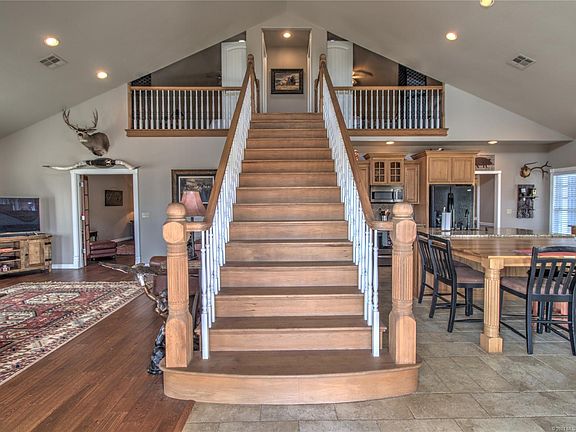 Custom country estate w/ improvements! Horse barn attached to home has concrete floor,5 stalls, tackroom,washstand & 12'OH door. 80X60 barn w/lean to on both sides w/concrete floor, 110/220 electric, (2) 10' sliding doors, (2) 12' OH doors. 6 car garage. 110 yr old barn w/new paint,roof & hydrant. (1)3 stall loafing shed,fenced/cross fenced 2 pastures,2,500' of new pipe fence,partial new 5 strand barbed wire fence,squeeze chute on concrete w/working pens/corral.3 ponds,wet weather creek.Minerals pass.