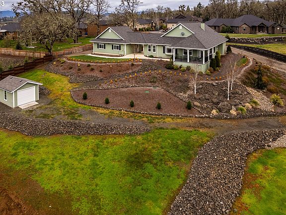 This stunning Garden Valley one-level custom home, located in a gated community, features high ceilings and an elegant design. The spacious great room has plush carpeted flooring, built-in bookcases, & a cozy gas fireplace. The gourmet kitchen has marble countertops, an induction cooktop, and custom locally made cabinets. The primary suite has a big walk-in closet and offers a private spa-like bathroom with double vanities and an ADA tiled roll-in shower. The home is ADA accessible with wide halls and zero step entry. There are two additional guest bedrooms, a pantry, and pre-wiring in place for built-ins. The 3-car garage has an electric hoist for easy attic storage lifting. Extra parking behind the gate next to the garage with RV hook ups. The yard is manicured and has an outbuilding that matches the house. CCRS are in place for protection. The Umpqua Valley is a nature lover's paradise. From the awe-inspiring waterfalls and rugged mountain peaks to the lush forests and winding rivers, there's no shortage of natural wonder to explore. Take a hike through the scenic Umpqua National Forest, cast a line in the mighty Umpqua River, or simply relax and take in the breathtaking views. In addition to its natural beauty, the Umpqua Valley is home to a thriving arts and culture scene. The area boasts a number of museums, art galleries, and performance venues, as well as a vibrant community of artists and artisans. Whether you're into live music, theater, or visual arts, there's something for everyone in the Umpqua Valley. But what really sets the Umpqua Valley apart is its strong sense of community. With a diverse population of friendly, welcoming people, it is a place where everyone feels at home. From the local farmers' markets, wineries, breweries and street fairs to the numerous community events and festivals throughout the year, there's always something going on in the Umpqua Valley. Come discover all that the Umpqua Valley has to offer and find your dream home today!