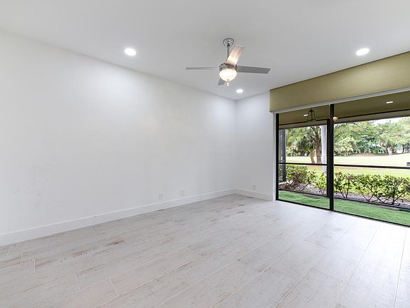 This 2 bedroom, 2 bath,1 car gargage single-story, end situated townhome is located on the 9th hole of the Fazio golf course in PGA National. It has been completely remodeled including a custom kitchen with soft close cabinets, wood-look porcelain tile flooring throughout, tastefully remodeled bathrooms, and a new HVAC in 2021. This villa has custom built in closets and window treatments. Enjoy views of the golf course from your living room, master bedroom and screened in back patio. There is a private courtyard/outdoor living space between the detached garage and the townhome that can be accessed from the kitchen or the guest bedroom. Townhome is investor friendly and can be rented for a minimum 30-day period. PGA patio homes has its own community pool..