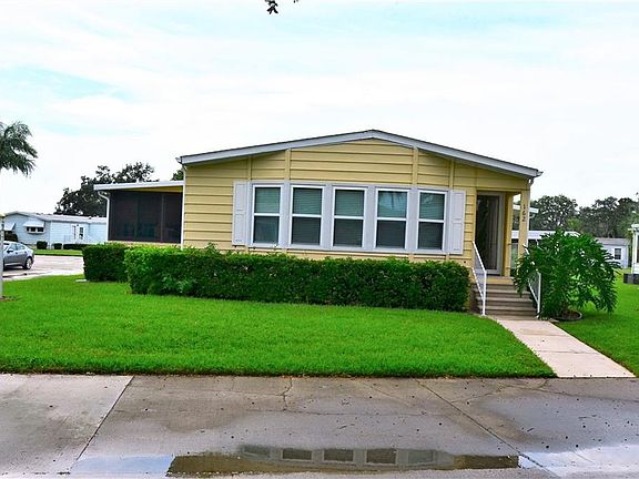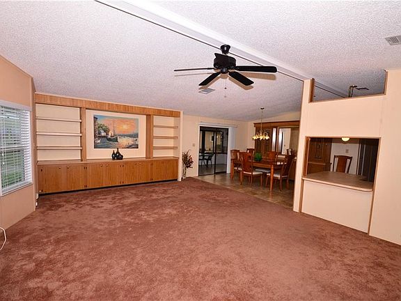 A Land Owned and lovingly maintained 2 Bedroom and 2 Bath home featuring an Open floor Plan with a Great room and Dinning built-ins, Breakfast counter, closet pantry, plenty of cabinets and counter space help complete the convenient kitchen which include, range, refrigerator, dishwasher,and microwave. The large master bedroom has adjoining bath with double sinks & separate shower. Second bedroom also has a walk in closet. Large Lanai has vinyl windows so you can get more use out of this room plus an a/c unit so you can enjoy sitting with friends or a good book. Flexibility of leaving it open for air flow or close up for heat or cooling depending on the season. You'll love this corner lot and the two car carport, which is unusual, in this community, and the oversized workshop and laundry room.RIDGEWOOD is a land-owned 55 and over, 24 hour Security & Gated community with Majestic oaks meander through this truly, park like, setting. Great for walking or bike riding under the shade of the oaks of the winding streets and quiet cul-de-sacs. Ridgewood gives you a peaceful feeling as you tour the neighborhood. Friendly smiles and waves will immediately make you feel at home and EVEN ALLOWS 2 PETS. Numerous social activities give you a chance to meet your new friends and neighbors. With their fun scheduled activities of Dinners ,Lunches, Card games, Shuffle board, Tennis, a Heated Community pool & Hot Tub and Community Trips, Ridgewood is A great place to call home!