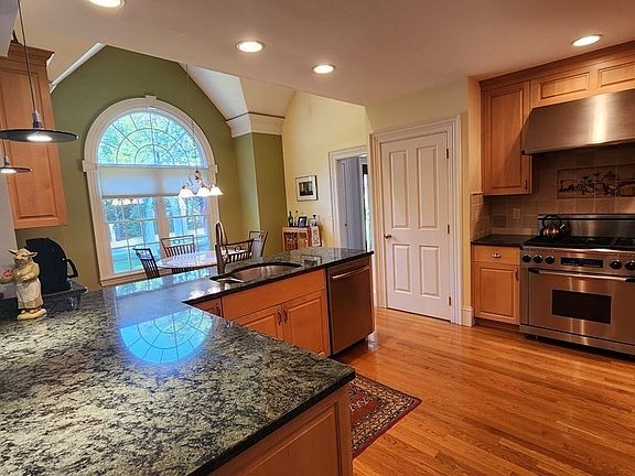 • Features: Coffered Ceiling(s), Flooring - Hardwood, Dining Area, Kitchen Island, Cabinets - Upgraded, Exterior Access, Open Floorplan, Recessed Lighting, Stainless Steel Appliances, Gas Stove, Peninsula, Crown Molding