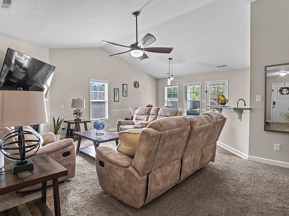 Now offering $150 OFF of the first two months of rent! Welcome to this beautifully maintained 3-bedroom, 2-bathroom home located in the desirable community of Holly Ridge. Perfectly situated just a short drive from local beaches and conveniently near the military base, this home offers both comfort and convenience. Step inside to find a spacious hallway that leads into a bright and open living area. The living space flows seamlessly into the dining room and kitchen, which features a stunning granite bar ideal for casual meals or entertaining guests. Natural light fills the home thanks to the many thoughtfully placed windows throughout. The primary suite includes a large bathroom with a relaxing soaking tub, walk-in shower, and ample closet space. Two additional bedrooms offer plenty of room for rest or work, while a versatile bonus room provides even more space perfect for a home office, hobby room, or additional storage. Enjoy the outdoors on the inviting front patio, or take advantage of the two-car garage for convenient parking and storage.