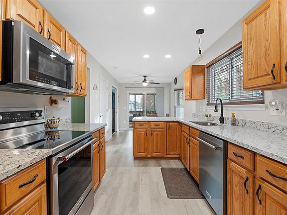 Welcome to this charming 2 bed, 2 bath villa on a desirable corner lot in the sought-after Dames Park neighborhood! Step inside to find vaulted ceilings, beautiful hardwood flooring, and a spacious, open floor plan that perfectly balances comfort and style. The large eat-in kitchen is a chef’s dream, featuring granite countertops, stainless steel appliances, and plenty of space for entertaining. Enjoy meals in the formal dining area or cozy up by the fireplace in the inviting living room. The primary suite offers a peaceful retreat with a large walk-in closet, dual sinks, a relaxing soaking tub, and a separate shower. Unwind on the screened-in porch overlooking the landscaped surroundings. New roof/gutters, windows '24. The unfinished basement, complete with a rough-in for a bathroom, provides excellent potential for customization. With a condo fee of $245, this home offers incredible value for its price. You don’t want to miss this opportunity!