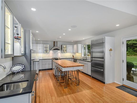 This fresh and new modern 4 bedroom w/ELEVATOR in the true heart of Silvermine is sited on a huge 1 acre lot w/ plenty of room for pool or playground. It's is a short stroll to Graybarns, Waterfall, Silvermine Arts Guild and all this historic community has to offer! Torn down and rebuilt in 2016, this open concept home has a completely modern feel with top quality construction and design elements and scenic views. The state of the art kitchen has hi gloss lacquer cabinets with European hinges, fabulous lighting, huge island and opens to the vaulted great room w/ quartz gas fplc. Master suite on main floor has stunning bath w/ double sinks and rain shower. Two more en suite bedrooms plus a Jack and Jill bedroom as well as two powder rooms offer great living options! Dining Rm w/woodburning fplc and large office on main floor allow for one level living. Glass paneled staircase is a chic touch. The large mudroom and playroom on entry level offers ELEVATOR access to main floor and allows for a nice separate recreation area w/half bath. Everything in this house is NEW. All systems, wiring, septic and well pump have been replaced. HVAC and tankless hot water are propane fed from the 1200 gallon tank. Foam insulation throughout the entire home and energy rated windows create a thermal envelope for heat savings. SONOS and RING systems as well as custom exterior lighting provides security and great entertainment value. Simplify your life! Nothing to do but move in and enjoy!