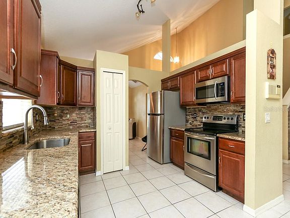 Back on the market. ''WELCOME TO THIS BEATIFULLY SPACIOUS HOME'' 5 Bedroom/ 3.5 Bathroom, two story home NEW to the market in the desirable Champion's Gate area. Completely renovated kitchen with granite countertops, and all appliances stay! Beautiful tile flooring in common areas, and carpet in bedrooms. Separate formal dining room with Master bedroom located on first floor. All other bedrooms are upstairs, with ample space for each family member! LED lighting system on the outside of the home, NEW ROOF, newer HVAC, newer pool pump, gorgeous sized heated pool/jacuzzi with lanai. Enjoy the tranquility while laying out in the FL sunshine, with no rear neighbors. This property can be used as a primary residence or vacation villa- zoned short term rental. 15 minutes from Disney and main attractions, I-4 accessible. Schedule your showing today!! Seller's are motivated!! Submit your offer today.
