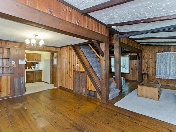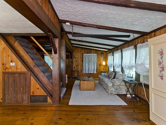 Meticulously maintained 3 Bedroom, 1 Bathroom SF Contemporary home in Ludlow on 3.6 Acres and a dead end road. Serenity and privacy as far as the eye can see. Enjoy the park-like conditions with the whole family. Get home from work and enjoy a dip in the pool, late night smores, gardening galore, take advantage of the very secure chicken coop for fresh eggs, or walk down to the path and picnic on your own private sparkling creek. It doesn't get any better than this. Enter to a well thought floor plan with Kitchen, upscale bathroom, laundry, sunroom, and living room on first floor. The kitchen has great space to entertain while the living room has the space needed to relax. And the Sunroom is a special area you will want to absorb sun, thoughts, or rays. Second floor consists of 3 bedrooms including the huge master that has a walk out sunroom and balcony overlooking the fabulous yard, pool, and hot tub. All within a few feet of the beech.