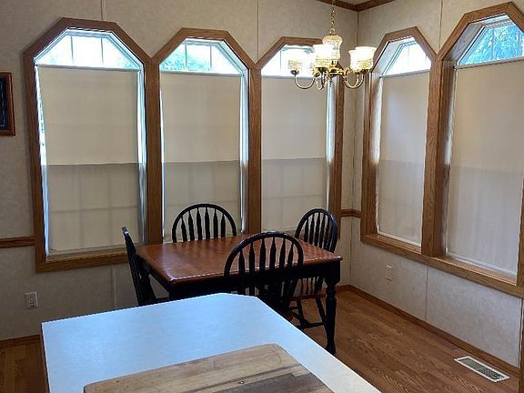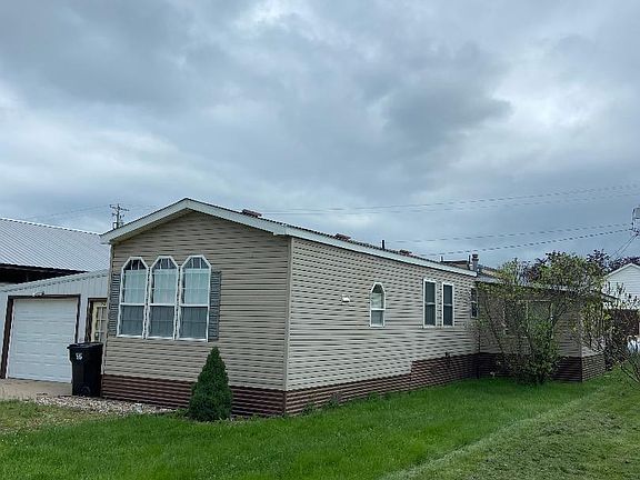 Very well maintained 3 bedroom, 2 bath mobile home on owned lot. Eat in kitchen with tons of cabinets. Large family room. Nice size master bedroom with en-suite bath. 3 season room, attached garage with workshop. Located within walking distance to restaurants and City Meat Market. Perfect weekend cabin for the hunter or fisherman.
