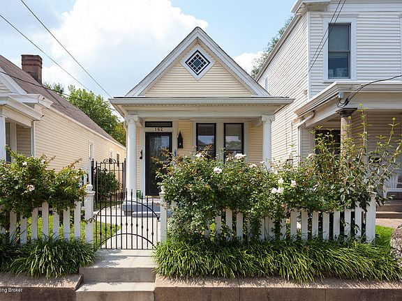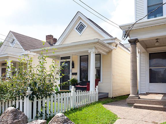 This gorgeous and tasteful Camelback home in the heart of Clifton is as lovely on the inside as it is on the outside. The picket fence with wrought iron gate, landscaped yard, manicured lawn and welcoming front porch are just the beginning. The interior features 10' ceilings, original pine floors, large windows, decorative fireplace and lots of historic detail. The front room is currently used as a living room, but with the side porch entrance to the house, many homeowners convert this room to a bedroom. The second room, currently used as a formal dining room, is spacious and can accommodate a large dining set. It could also function as a den or substitute living room. The eat-in kitchen, with separate entrance, is expansive with ample counter and cabinet space, corner sink, and double closet. There is a separate laundry space within the eat-in kitchen. All appliances, including washer and dryer, may remain with the house. The bedroom at the back of the first floor has a double closet and opens onto the rear porch and yard. The first floor bathroom has a pedestal sink, tub/shower and a large linen closet/storage area underneath the staircase. Upstairs, the camelback room is bright and large, with multiple windows, good closet space, high ceilings and access to the the large attic. The rear yard is beautifully maintained with ornamental shrubs, raised herb garden, small patio space, wrought iron fencing, storage shed and ample off street parking. Cellar access is in the back bedroom and there is a whole-home security system (not used by current owner). Located just one block off of historic and happening Frankfort Avenue with its many restaurants and locally-owned businesses, easy busy access, and just minutes from downtown, this house is in a super-convenient and central Louisville location. The current owner has rented this home many weekends on Airbnb for $150/night and for much more during Derby. For buyer assurance the seller is offering a 1-year HMS Home Warranty.